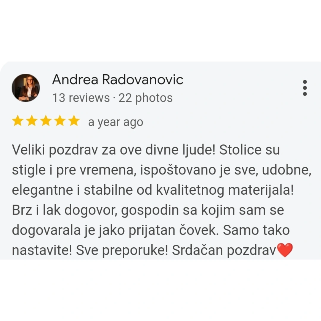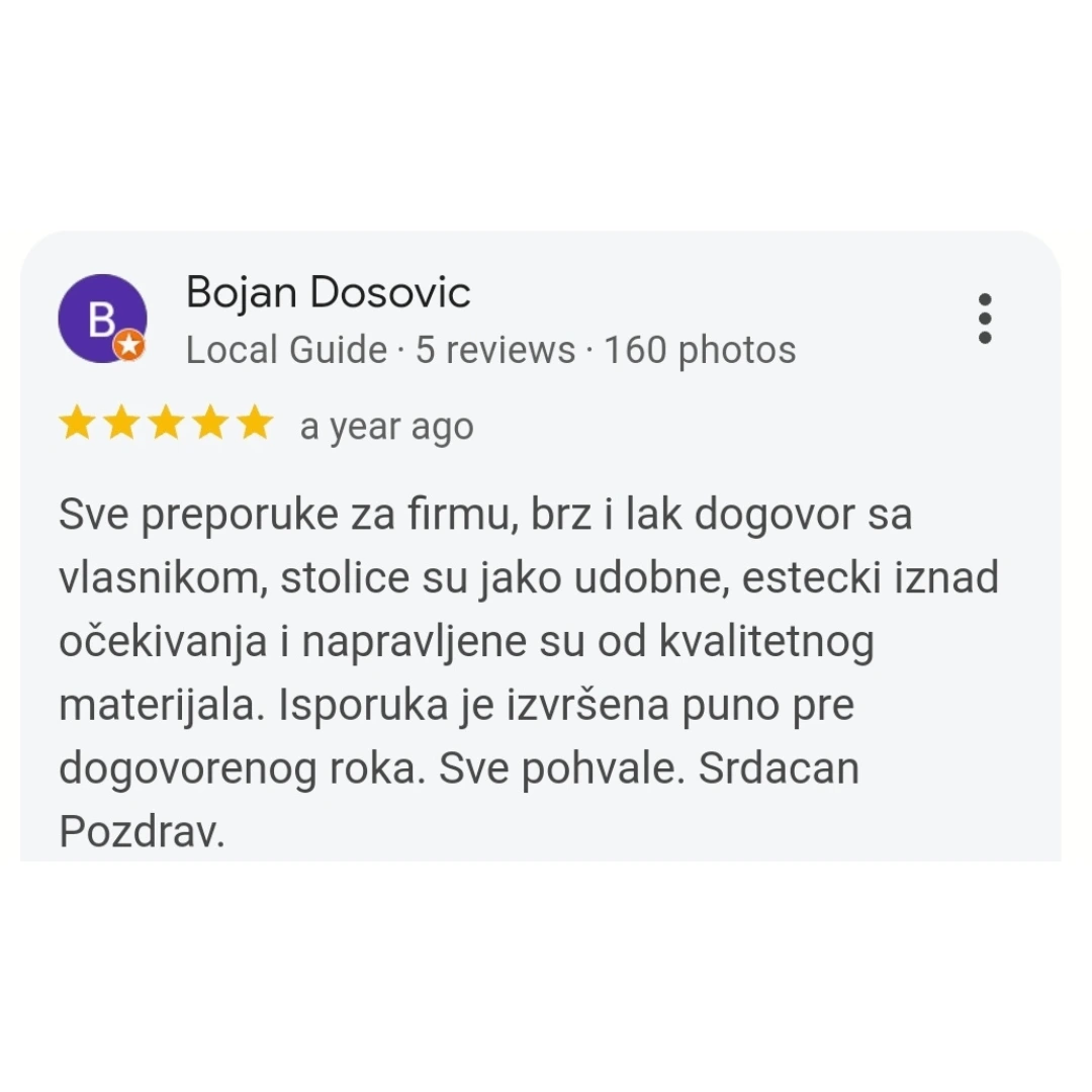 Transformišite svoj prostor uz trpezarijske stolice koje kombinuju udobnost, stil i prilagođavanje po meri. Posetite našu radionicu, pregledajte kolekciju na sajtu, ili nas kontaktirajte kako bismo zajedno kreirali savršene stolice za vaš dom